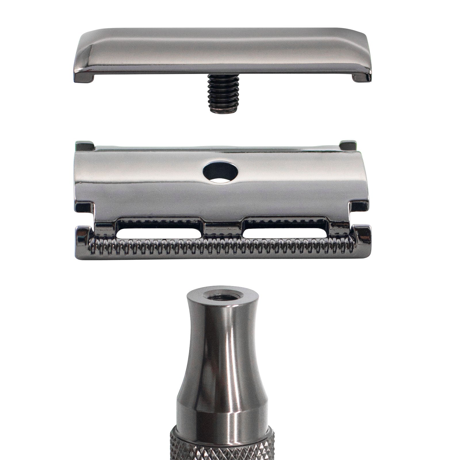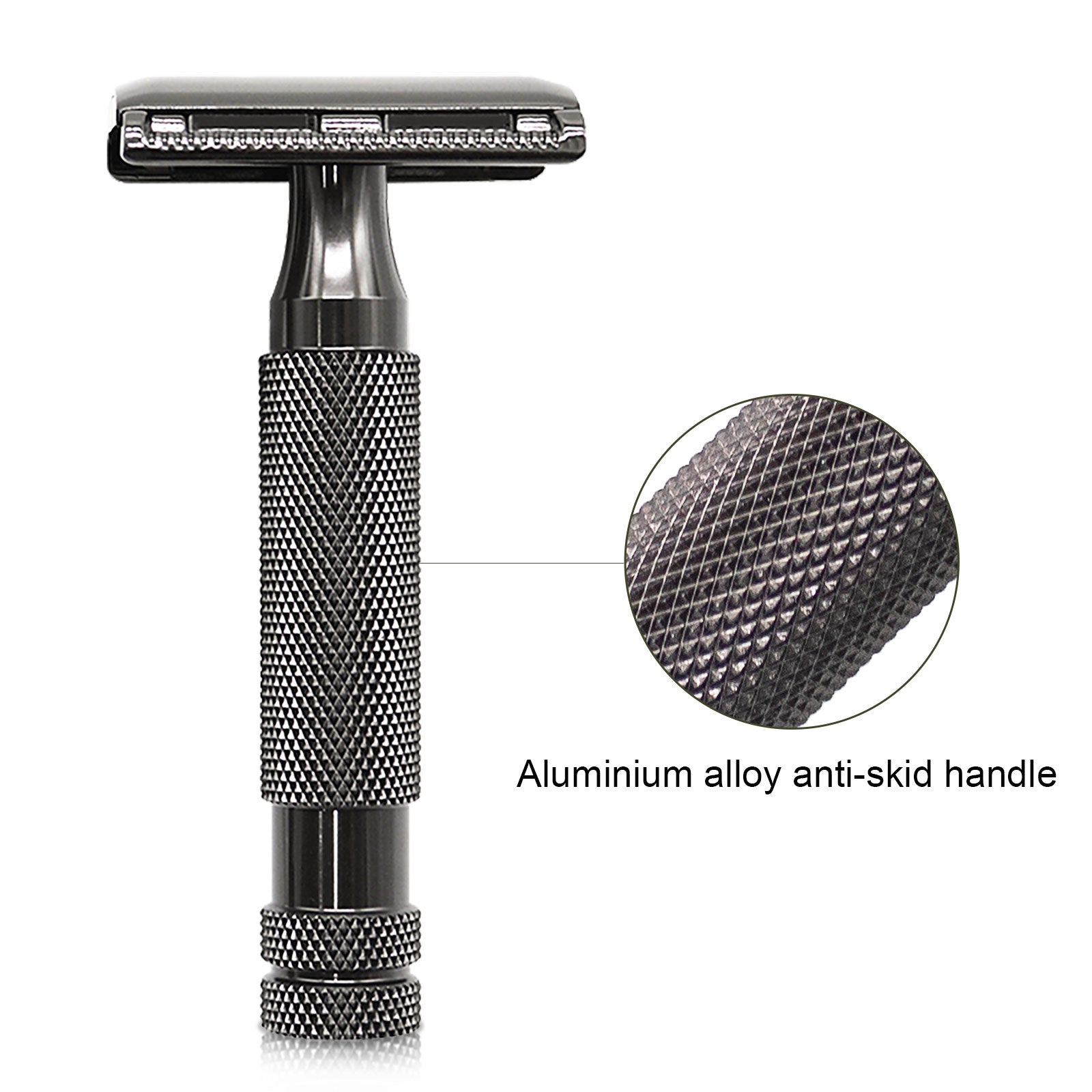 The closed comb head is expertly engineered and is finished with high-quality stainless steel plating. The razor is laser etched onto the head. The Handle is shaped for ultimate comfort in the hand. Checkered knurling for superior grip! You will be proud to pick this razor up and shave with it, and you will be supremely impressed with the result!