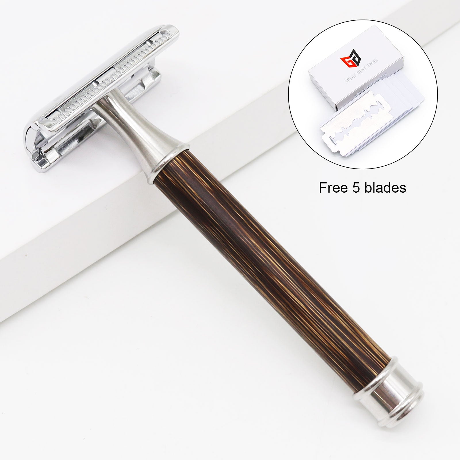 Great Gentleman Double Edge Shaving Safety Razor with Bamboo Wood Handle